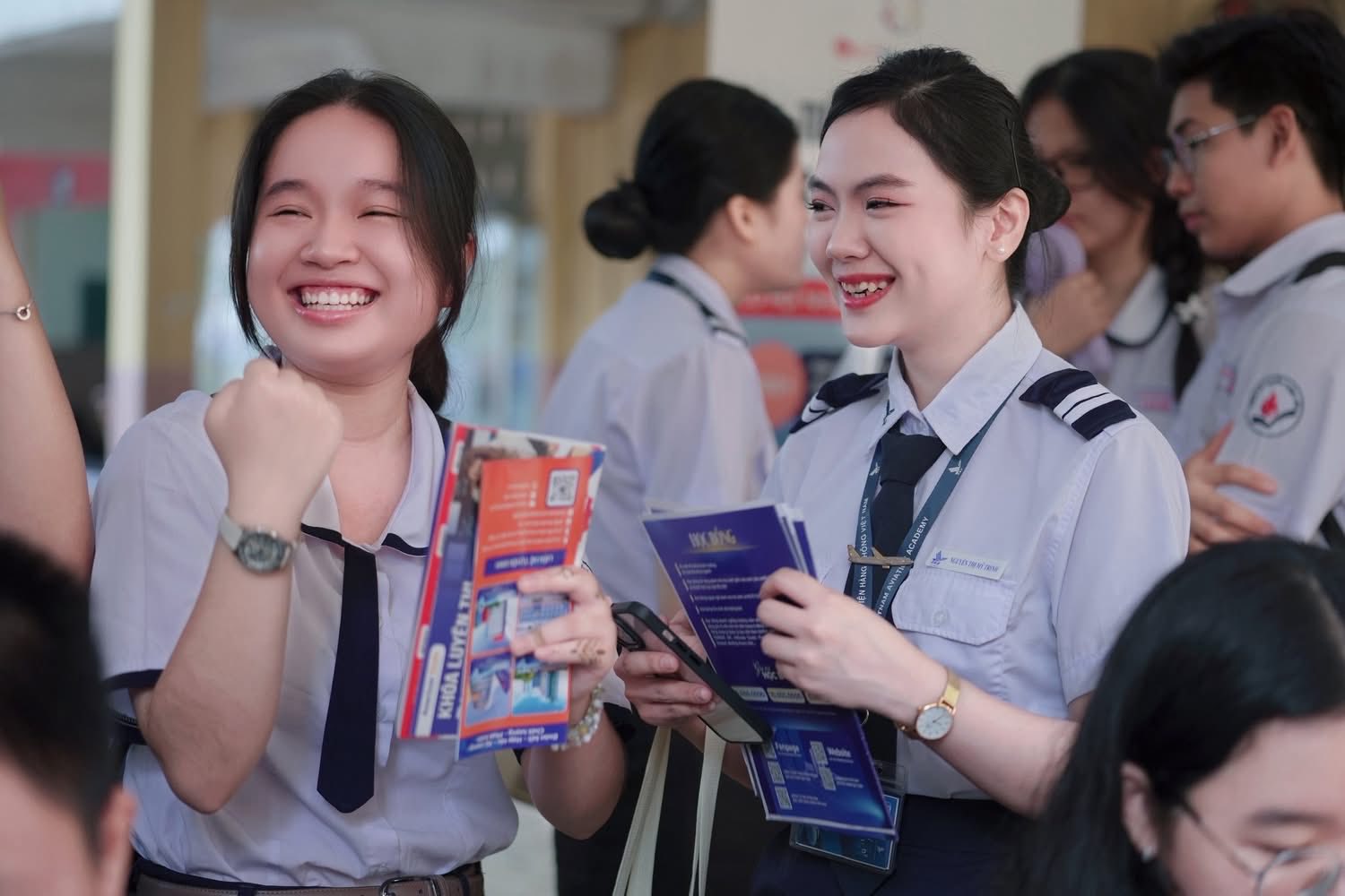 Không khí tư vấn diễn ra sôi nổi khi nhiều học sinh hào hứng tìm hiểu về các ngành học, đặt câu hỏi và được tư vấn cụ thể về lộ trình học tập cũng như cơ hội phát triển trong ngành hàng không – lĩnh vực đang có nhu cầu nhân lực cao trong những năm tới.