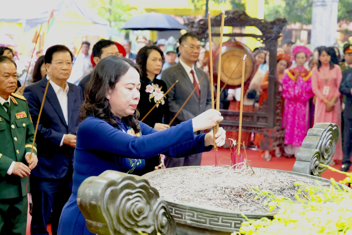 Bà Võ Thị Ánh Xuân, Bí thư TƯ Đảng, Phó Chủ tịch nước, thực hiện nghi thức dâng hương