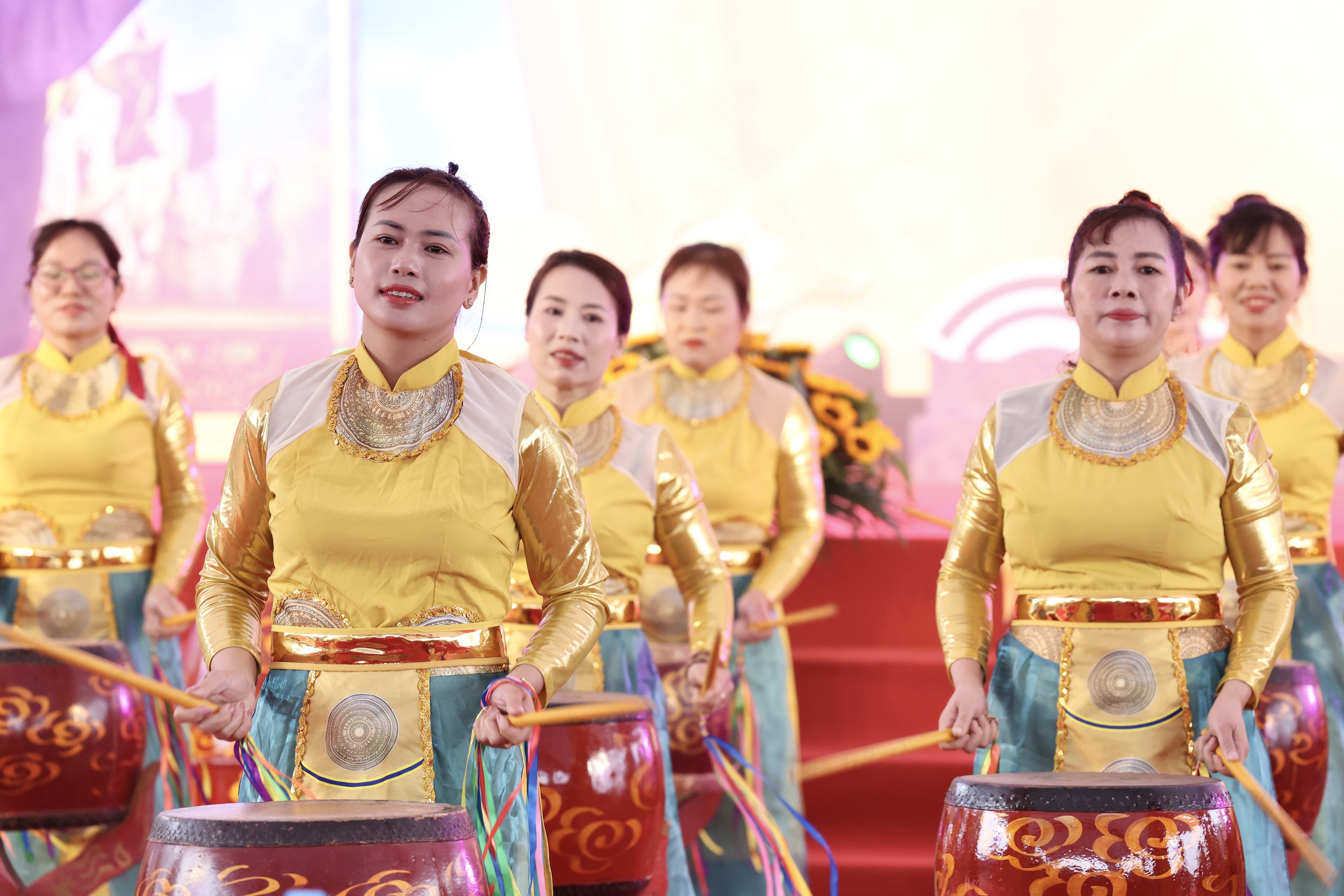 Tiết mục trống khai hội do hội viên, phụ nữ xã Mê Linh trình diễn