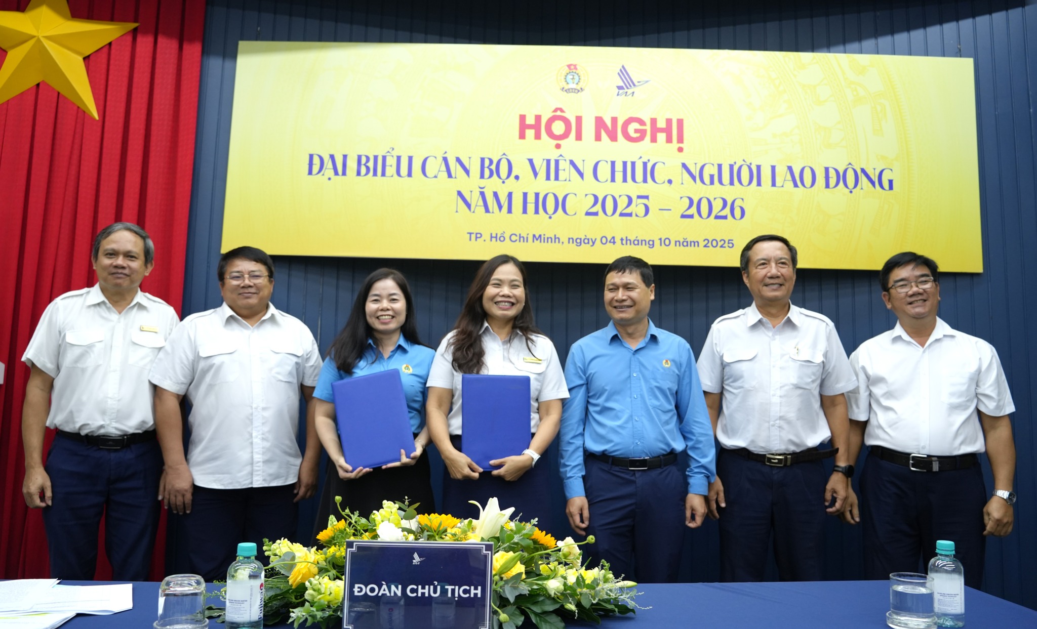 Đặc biệt, tại Hội nghị, Học viện Hàng không Việt Nam và Công đoàn Học viện đã tổ chức lễ ký kết giao ước thi đua năm học 2025–2026. Đây là hoạt động mang ý nghĩa sâu sắc, khẳng định sự phối hợp chặt chẽ giữa chính quyền và Công đoàn trong việc xây dựng môi trường làm việc dân chủ, kỷ cương, sáng tạo, phát huy quyền làm chủ của người lao động, không ngừng nâng cao chất lượng đào tạo, nghiên cứu và đời sống cán bộ, viên chức, người lao động.