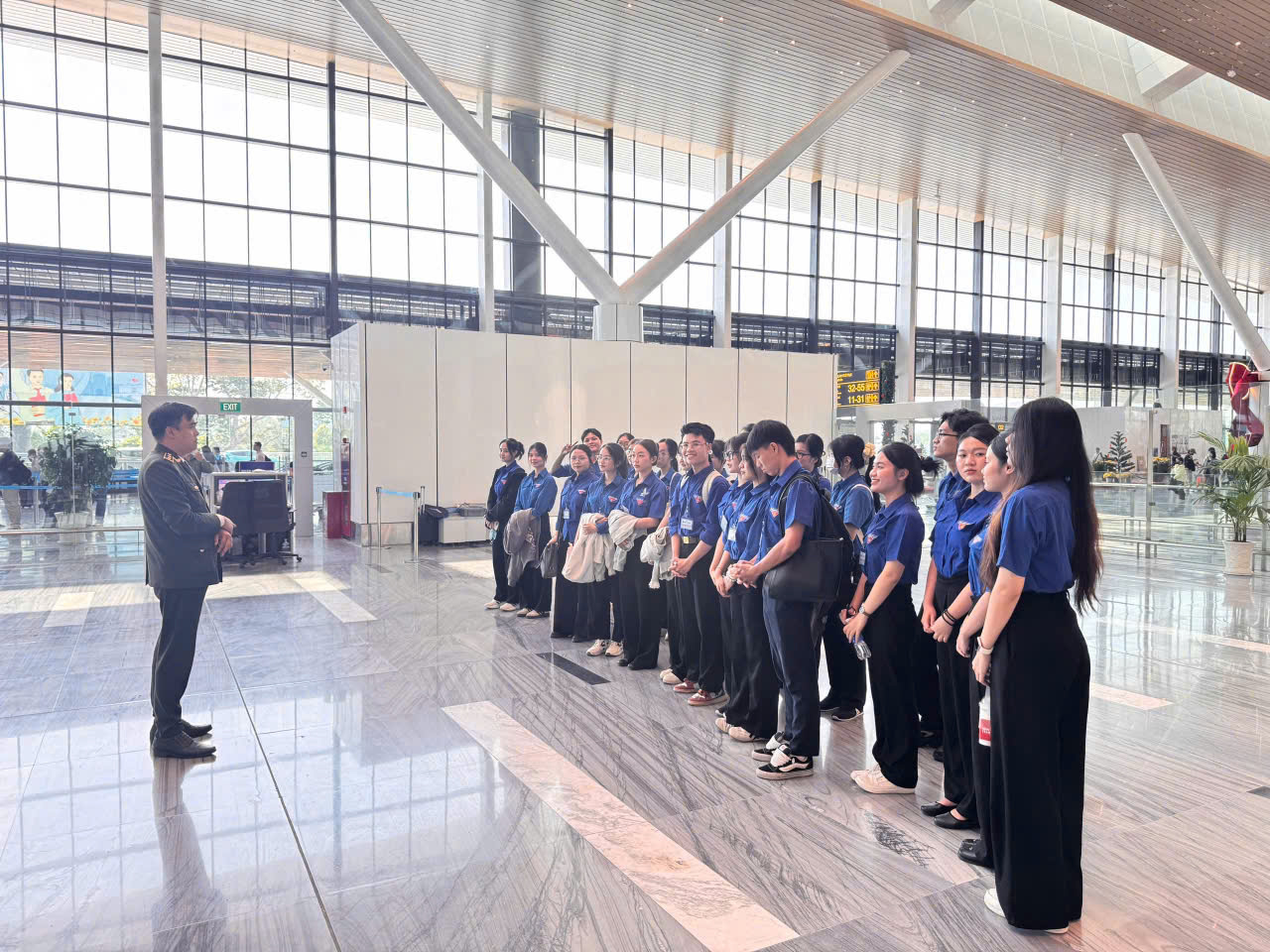 Hoạt động trực cảng góp phần giảm tải áp lực tại khu vực nhà ga, lan tỏa hình ảnh sinh viên hàng không thân thiện, chuyên nghiệp và trách nhiệm. (Ảnh: Đoàn Thanh niên – Hội Sinh viên VAA)