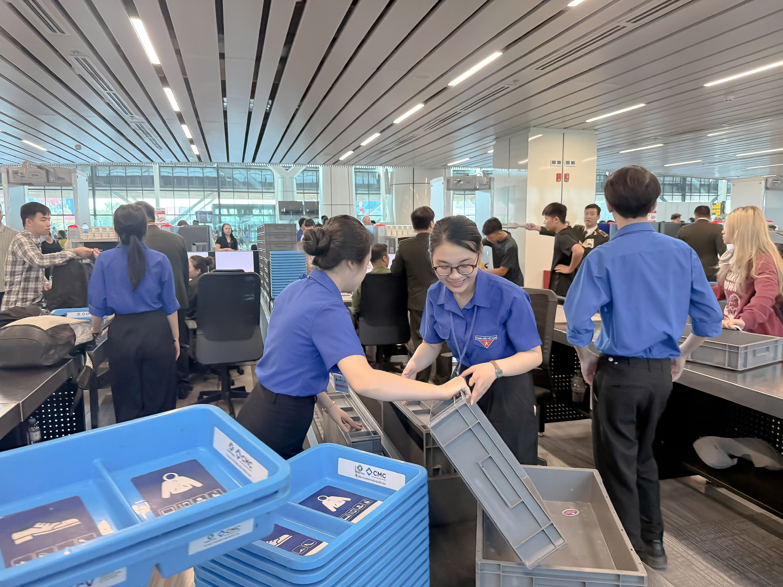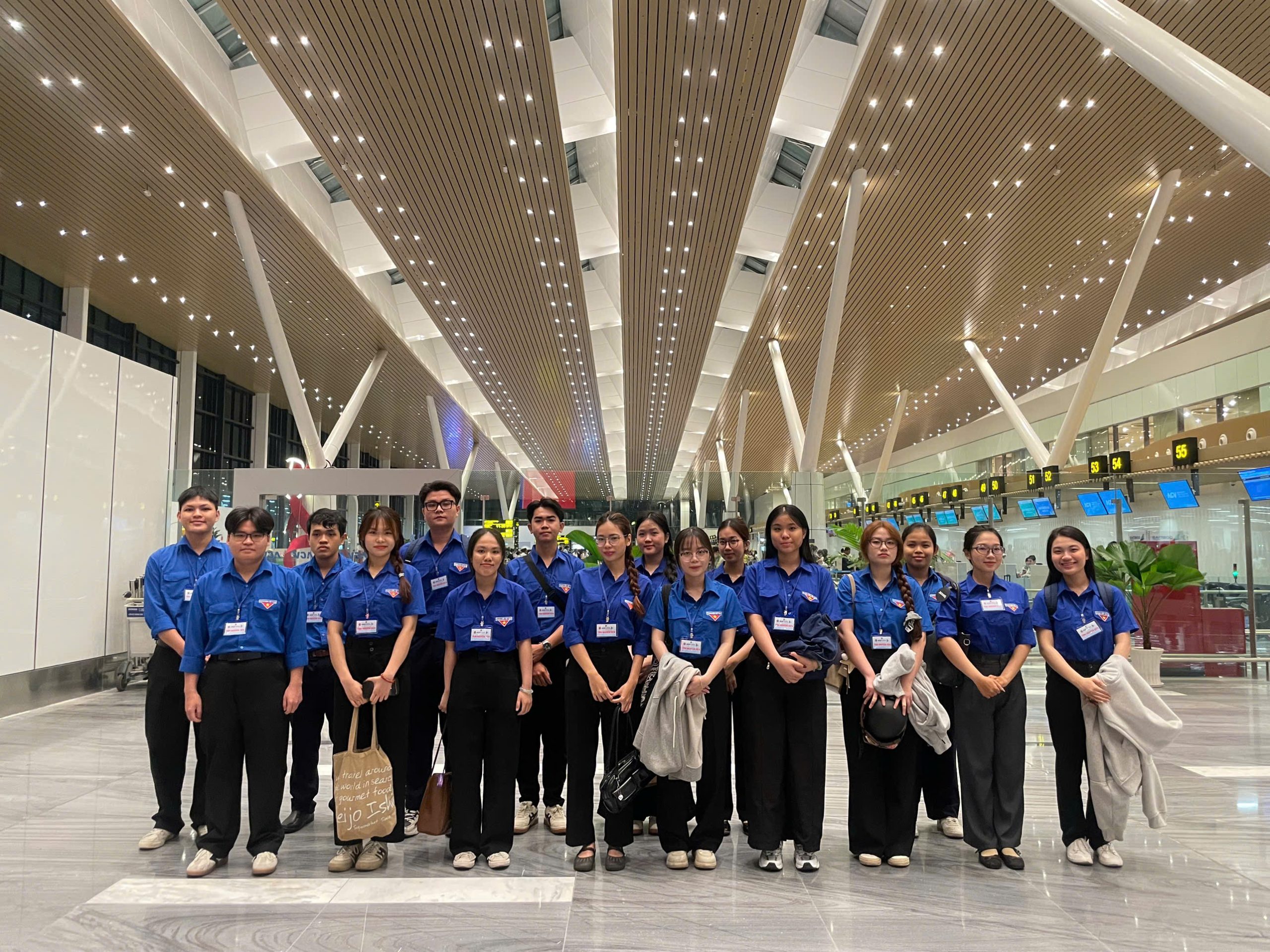 Đoàn viên, sinh viên Học viện Hàng không Việt Nam sẵn sàng nhận nhiệm vụ, tham gia trực cảng tại các nhà ga T1, T2 và T3. (Ảnh: Đoàn Thanh niên – Hội Sinh viên VAA)
