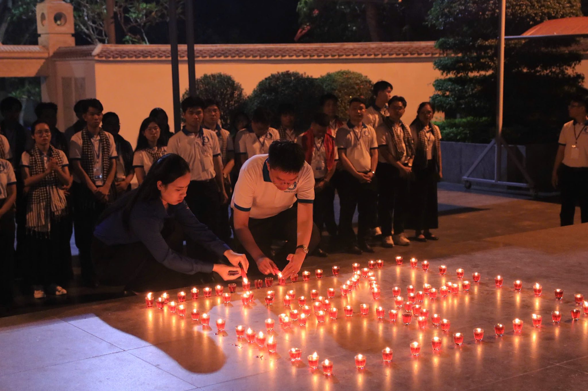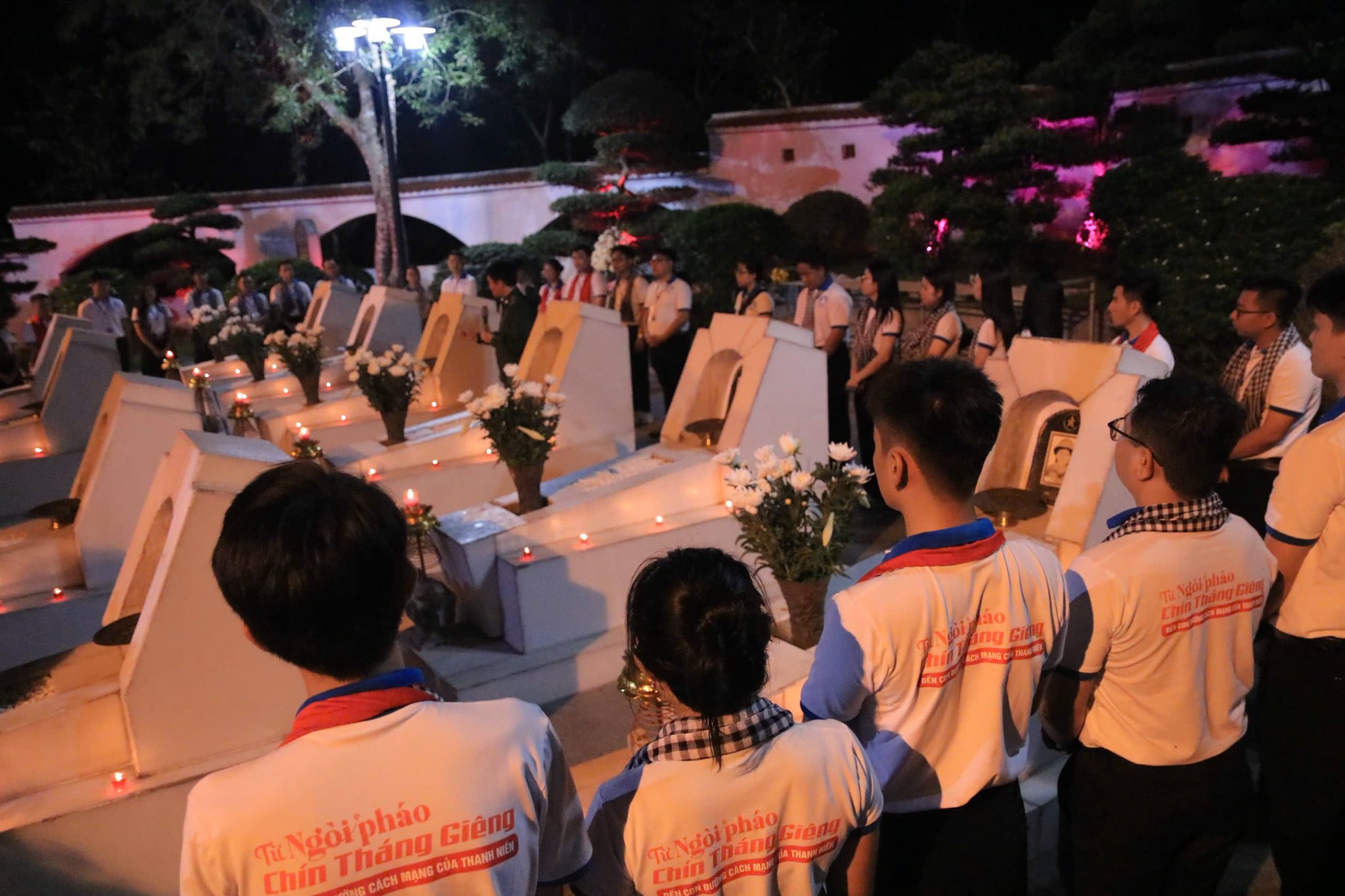 Đặc biệt, trong không khí trang nghiêm tại Ngã ba Đồng Lộc, đoàn đã tham gia lễ thắp nến tri ân, tưởng nhớ các anh hùng liệt sĩ, lực lượng thanh niên xung phong đã anh dũng hy sinh vì độc lập, tự do của Tổ quốc. Những ngọn nến lung linh trong đêm không chỉ thắp sáng không gian tưởng niệm mà còn thắp lên trong mỗi người ngọn lửa của lòng biết ơn và trách nhiệm tiếp nối.