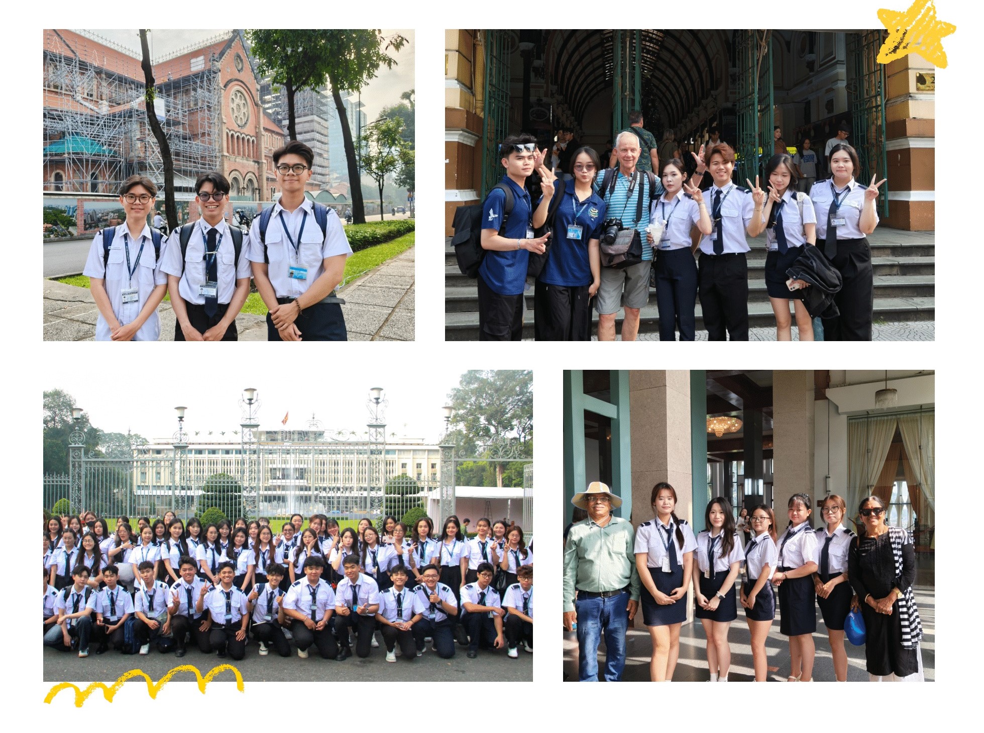 Khởi đầu hành trình, sinh viên đã dừng chân tại Nhà thờ Đức Bà một trong những biểu tượng tôn giáo và kiến trúc mang tính biểu tượng nhất của thành phố. Giữa không gian uy nghiêm pha chút lắng đọng, các bạn được đắm mình trong vẻ đẹp cổ kính, lắng nghe những câu chuyện về lịch sử hình thành và giá trị văn hóa độc đáo còn lưu giữ đến ngày nay.