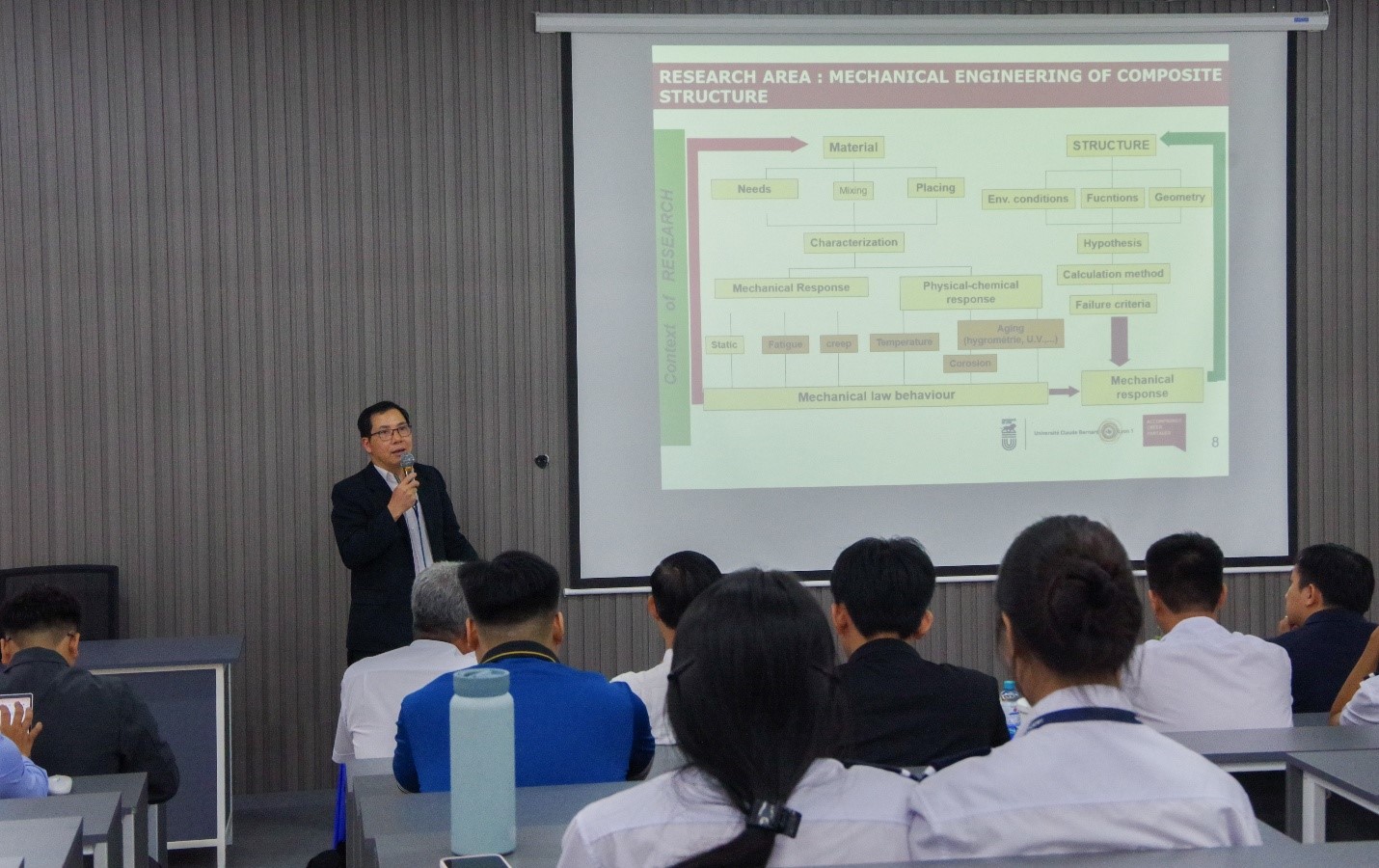 A key highlight of the conference was the presence of Assoc. Prof. Dr. Vu Xuan Hong, a senior research expert from Lyon 1 University (France). He provided a comprehensive overview of the world-class academic environment in France while detailing advanced research projects at the Laboratory for Composite Materials and Structures (LMC2). Beyond academic insights, Professor Hong also offered guidance on scholarship opportunities, study abroad programs, and specialized research pathways in France for VAA students.