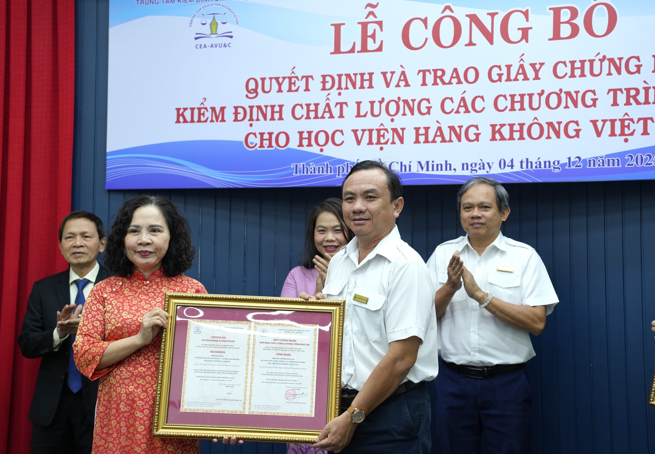 This morning, December 4, the Vietnam Aviation Academy was officially recognized as meeting quality accreditation standards for its English Language and Information Technology training programs, following an evaluation conducted by the Center for Educational Quality Accreditation under the Association of Vietnamese Universities and Colleges.