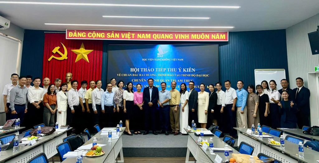Ngày 13 tháng 3 tại phòng A201 – campus Nguyễn Văn Trỗi, Khoa du lịch và Dịch vụ Hàng không – Học viện Hàng không Việt Nam đã tổ chức hội thảo nhằm tiếp thu ý kiến từ các bên liên quan về chương trình đào tạo trình độ đại học chuyên ngành Quản trị Du lịch MICE và tổ chức sự kiện thuộc ngành Quản trị Dịch vụ du lịch và lữ hành (Mã ngành 7810103).