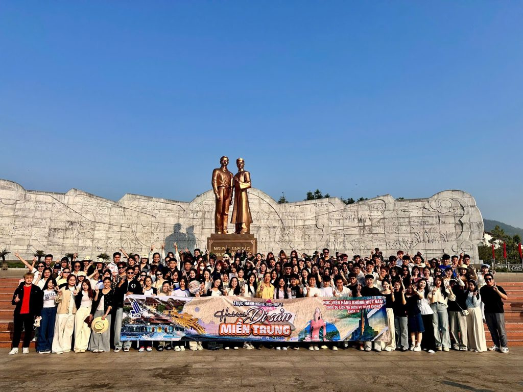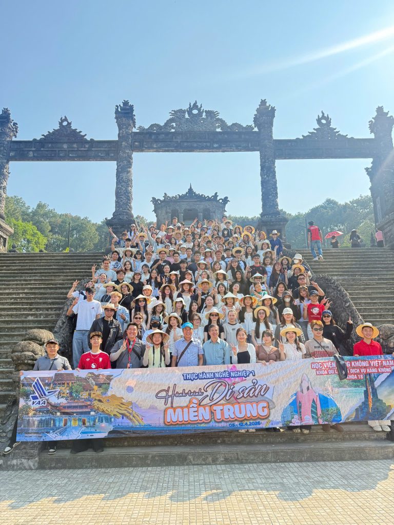Vừa qua từ 05/4 đến 12/4/2026, hơn 120 sinh viên K18 chuyên ngành Quản trị Lữ hành, thuộc ngành Quản trị dịch vụ du lịch và lữ hành, Học viện Hàng không Việt Nam đã tham gia Tour Thực hành Nghề nghiệp 1 – Di sản miền Trung kéo dài 8 ngày 7 đêm.