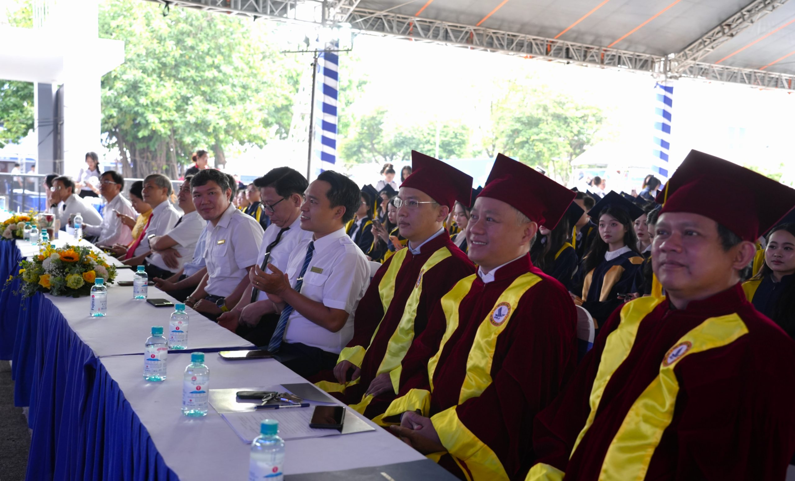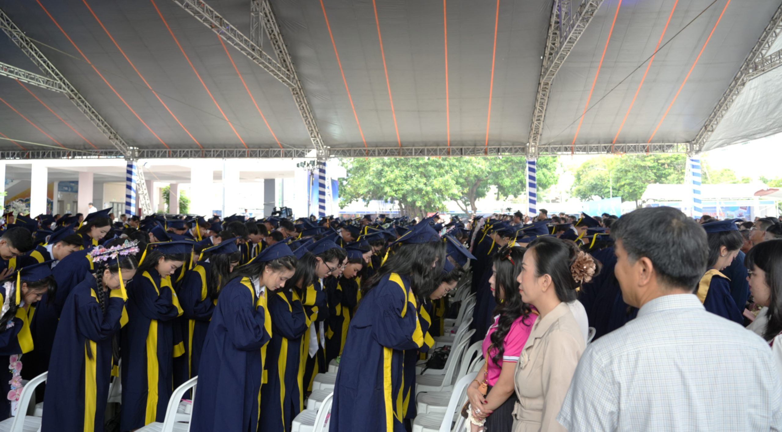 Khi tiếng nhạc vang lên trong phần tri ân thầy cô và cha mẹ, cả khán phòng lặng đi, những tân khoa cúi đầu cảm ơn không chỉ người thầy tận tụy bên bảng giảng, mà còn là hình ảnh của những người cha, người mẹ đã lặng lẽ dõi theo từng bước con đi. Ở hàng ghế phụ huynh, nhiều ánh mắt rưng rưng khi nhìn thấy con mình trưởng thành, tự tin trong chiếc áo tốt nghiệp. Giữa khoảnh khắc ấy, niềm tự hào và biết ơn hòa vào nhau, tạo nên một bức tranh đẹp về tình thầy trò, nghĩa sinh thành và hành trình trưởng thành của tuổi trẻ.