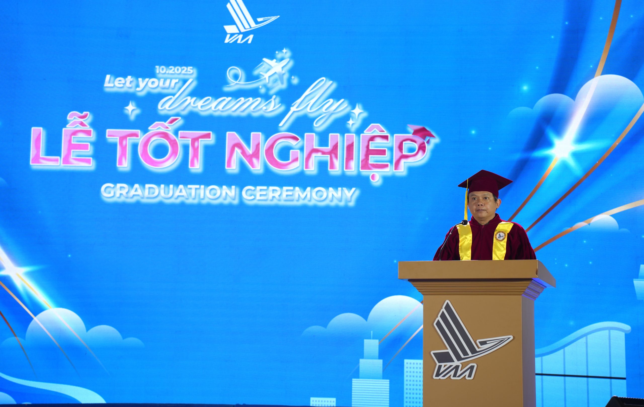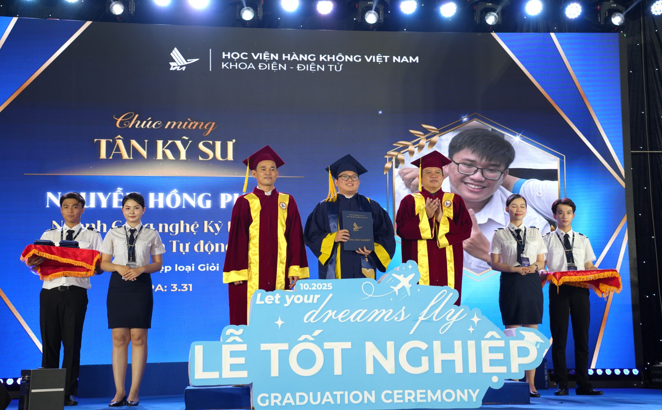 Lễ tốt nghiệp tháng 10/2025 khép lại trong niềm hân hoan và tự hào. Từ mái trường Học viện Hàng không Việt Nam, hàng trăm “cánh chim” trẻ lại cất cánh mang theo tri thức, khát vọng và tinh thần hàng không: vững vàng, bản lĩnh, sẵn sàng chinh phục bầu trời tương lai. Và như lời Định nói, “chúng ta không sinh ra để tránh nhiễu động, mà để kiên cường vượt qua nó” đây cũng chính là lời hứa của thế hệ trẻ Học viện gửi đến bầu trời và Tổ quốc hôm nay.