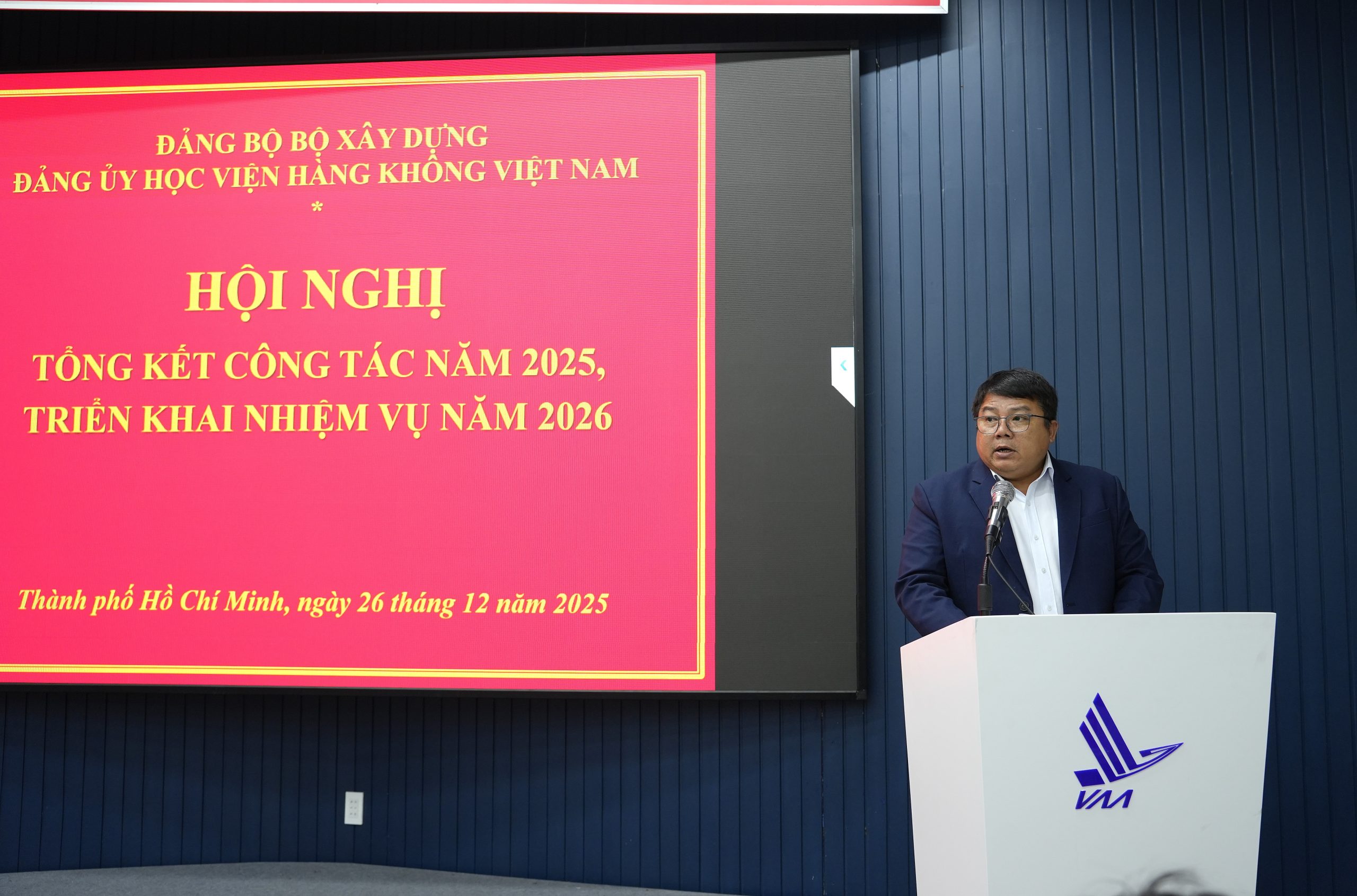Ngày 26/12/2025, tại TP. Hồ Chí Minh, Đảng bộ Học viện Hàng không Việt Nam tổ chức Hội nghị tổng kết công tác năm 2025, triển khai nhiệm vụ năm 2026. Hội nghị nhằm đánh giá toàn diện kết quả lãnh đạo, chỉ đạo thực hiện nhiệm vụ chính trị và công tác xây dựng Đảng trong năm qua; đồng thời xác định phương hướng, nhiệm vụ trọng tâm cho năm 2026.