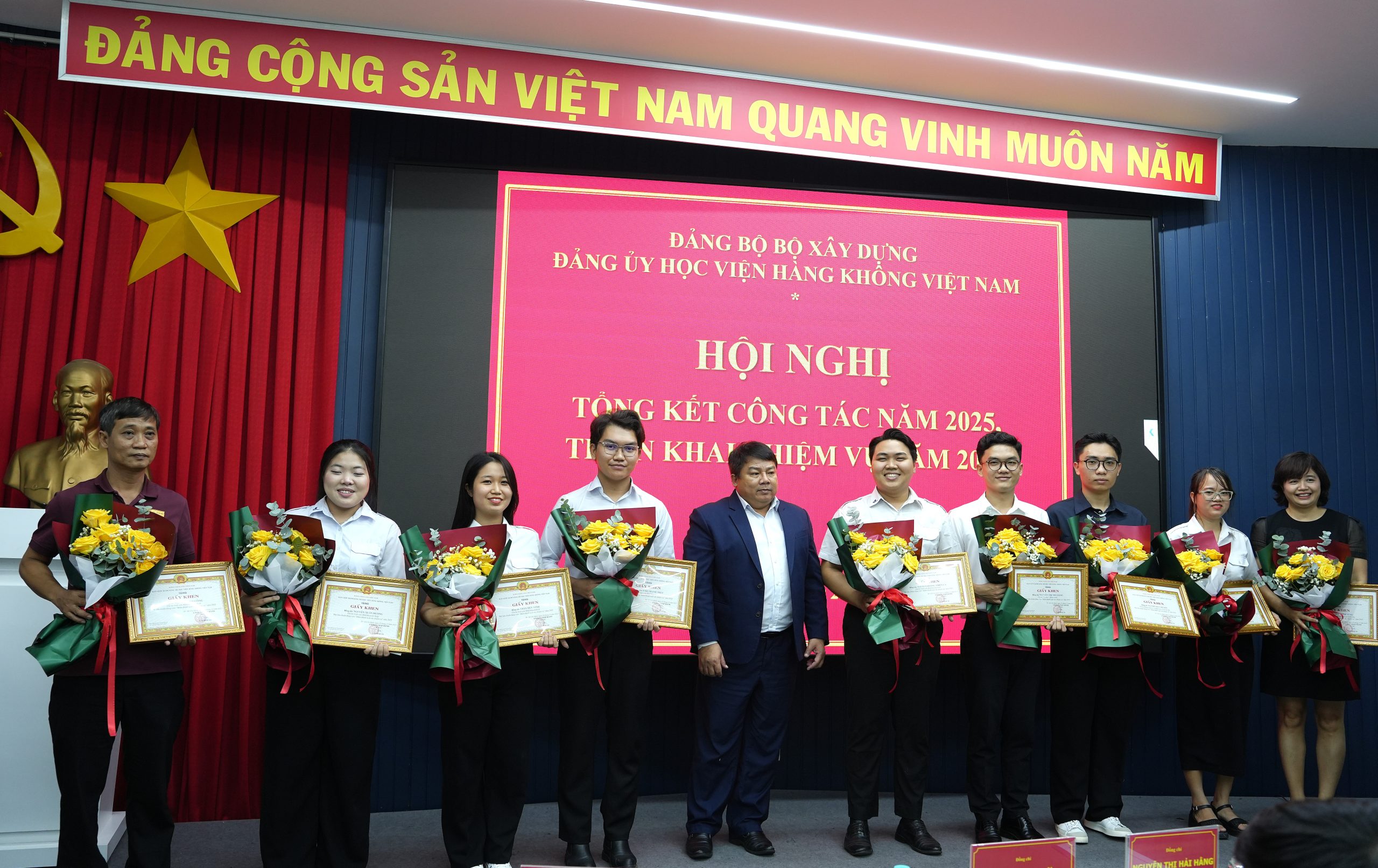 Đảng ủy Học viện Hàng không Việt Nam đã trao giấy khen cho các chi bộ và đảng viên đạt tiêu chuẩn “Hoàn thành xuất sắc nhiệm vụ” năm 2025