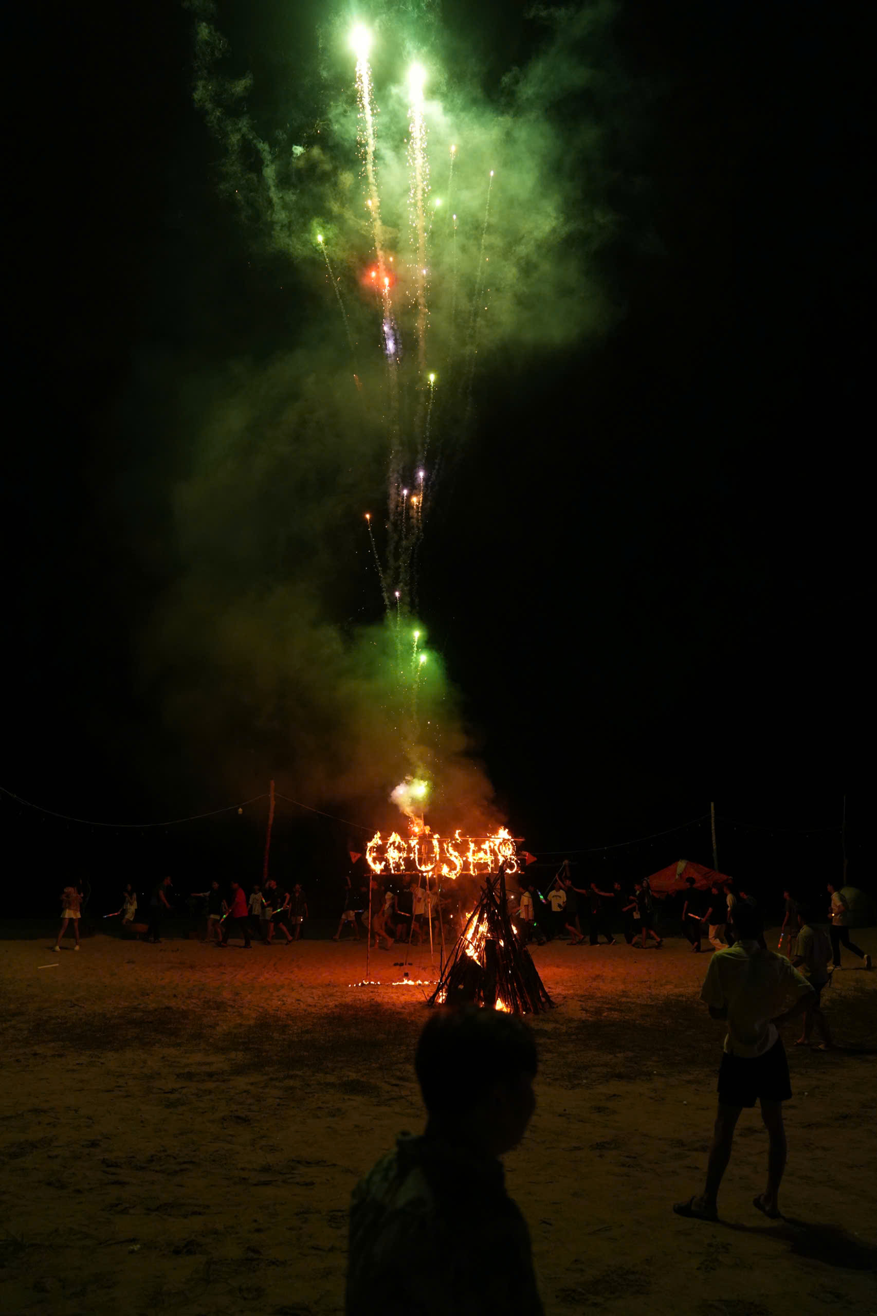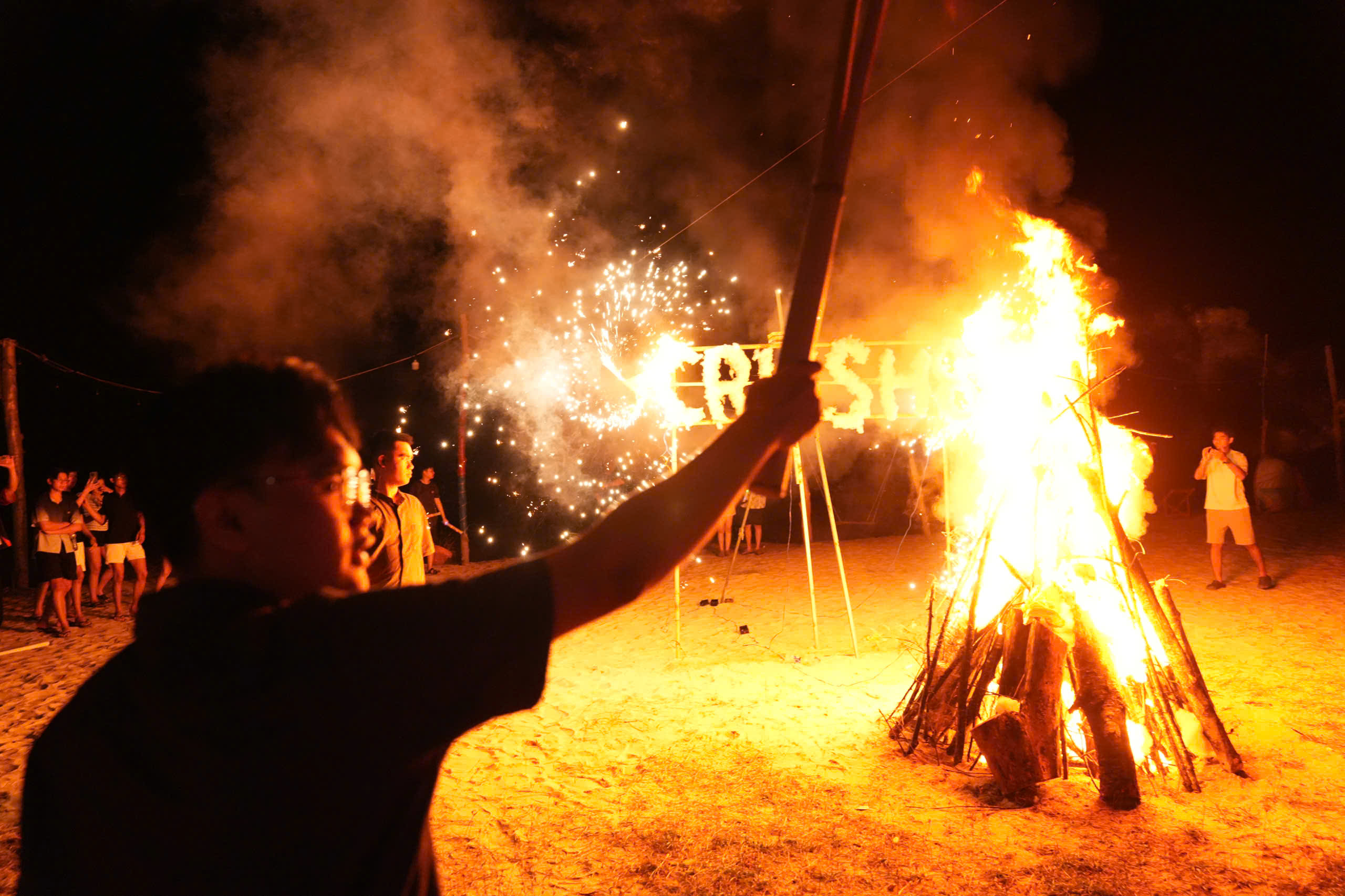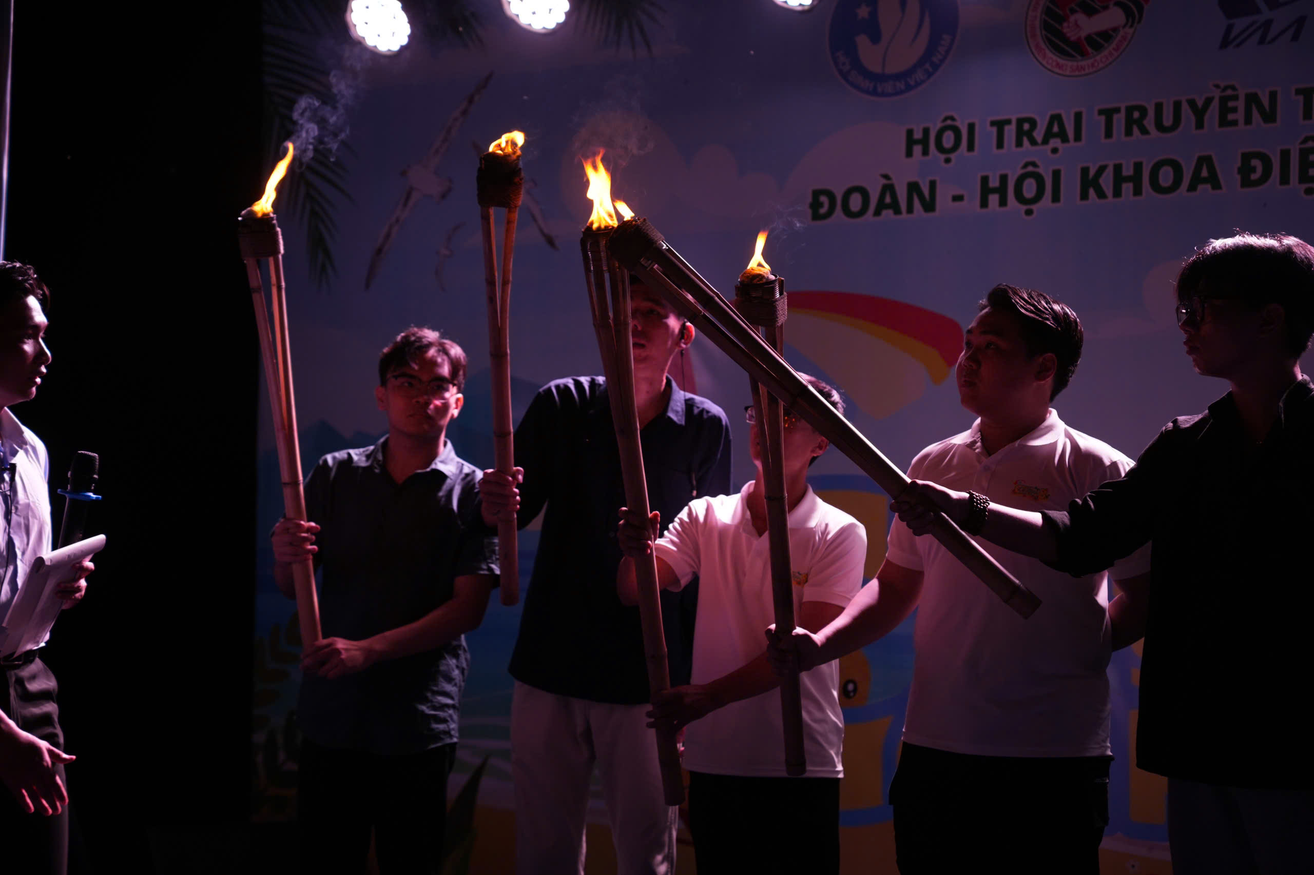 Đêm lửa trại bùng cháy – nơi tuổi trẻ cùng hòa chung nhịp tim, thắp sáng ngọn lửa đam mê và khát vọng bay cao, bay xa. (Ảnh: Đoàn – Hội Khoa Điện – Điện tử)