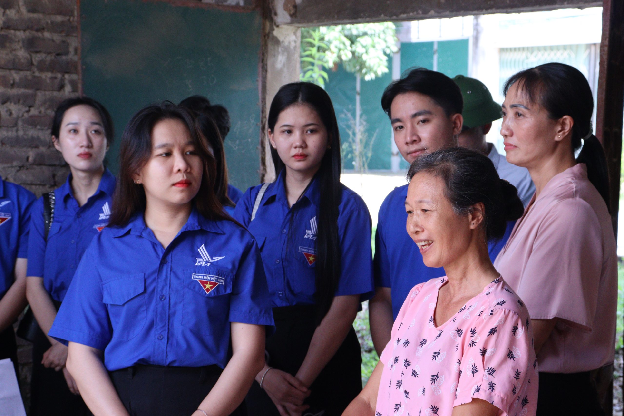 Tuổi trẻ Học viện Hàng không Việt Nam trao gửi yêu thương và niềm tin đến người dân xã Ngọc Thiện – nơi chịu thiệt hại nặng nề sau cơn bão Matmo. (Ảnh: ĐTN-HSV)