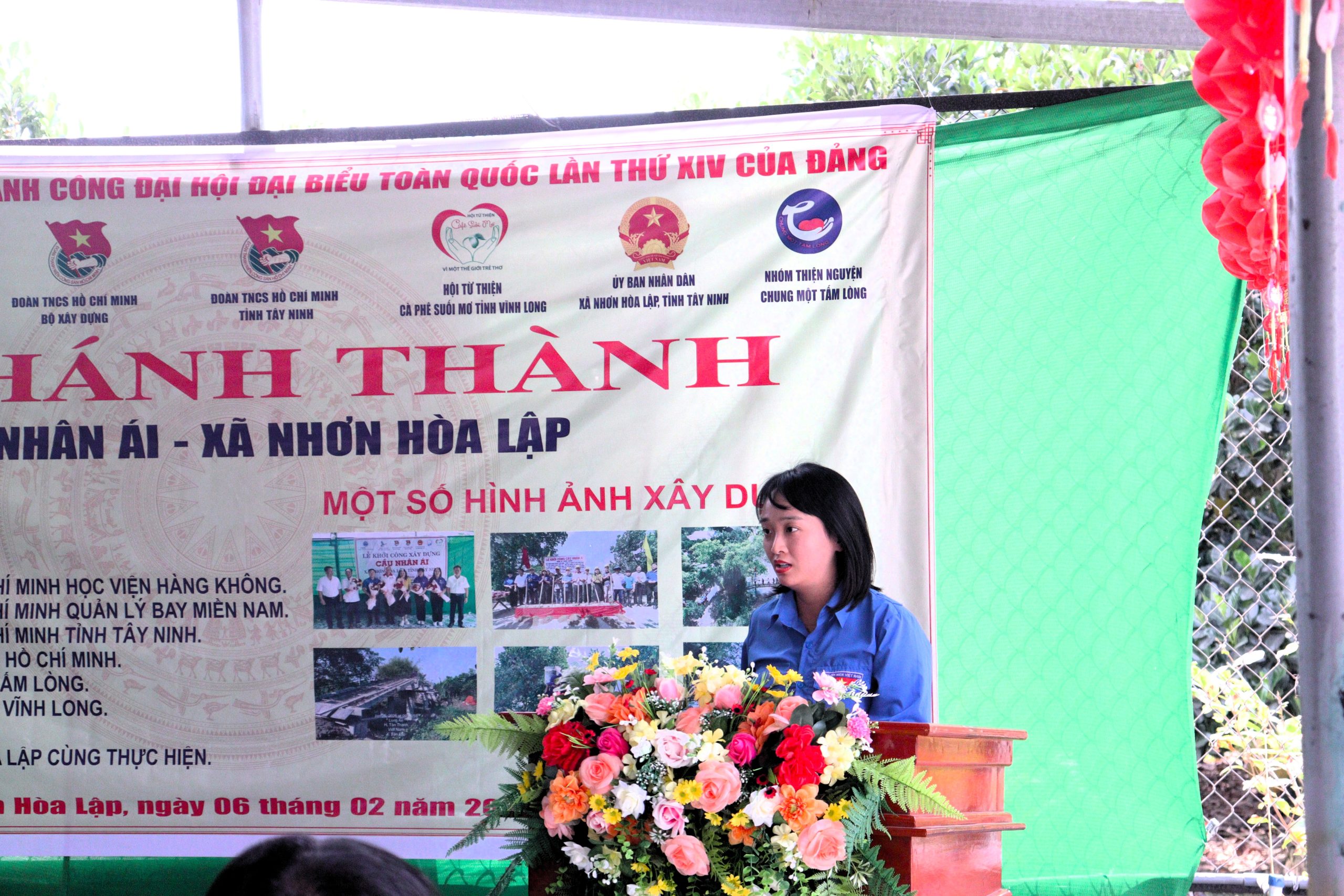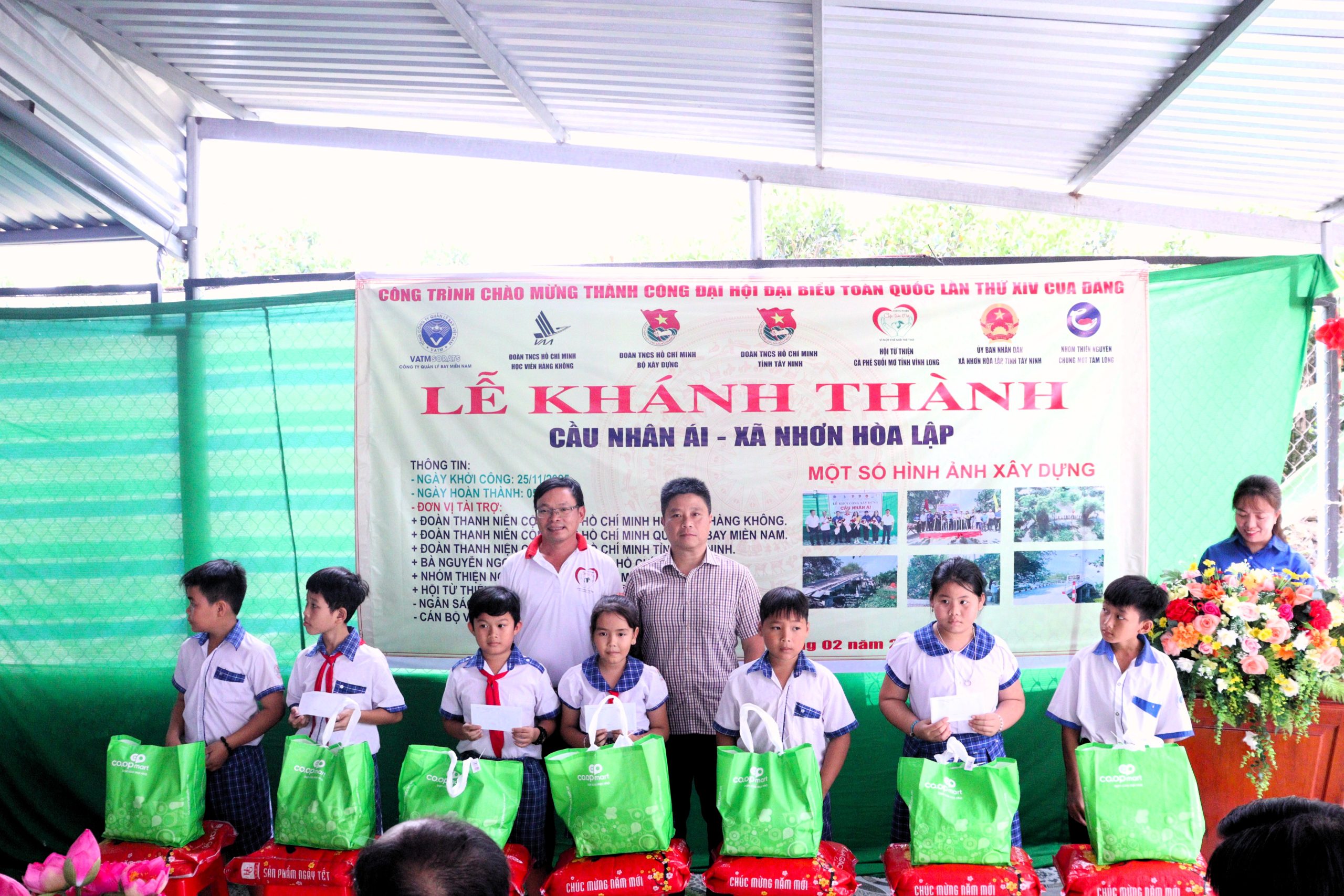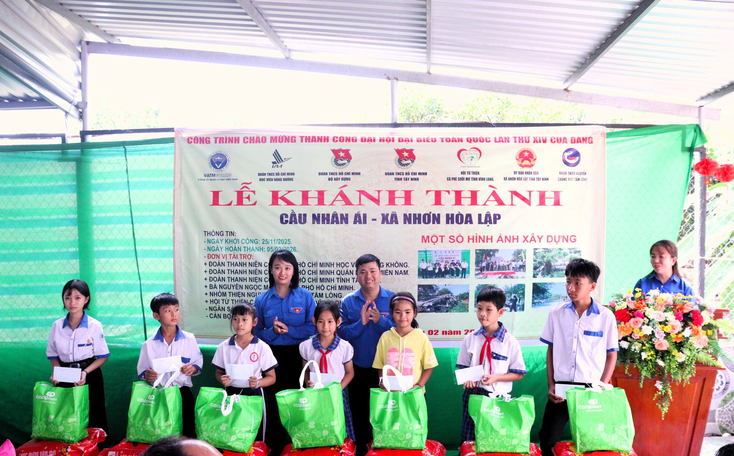 Lễ khánh thành Công trình Cầu Nhân Ái tại xã Nhơn Hòa Lập, tỉnh Tây Ninh với sự tham gia của Đoàn TNCS Hồ Chí Minh Bộ Xây dựng và Đoàn Thanh niên – Hội Sinh viên Học viện Hàng không Việt Nam. (Ảnh: Đoàn Thanh niên – Hội Sinh viên VAA)