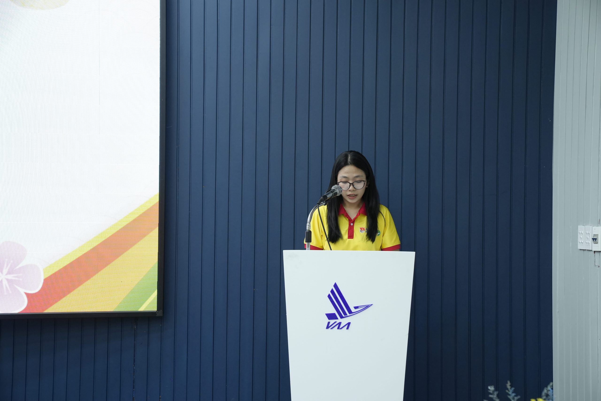 Chiến sĩ Nguyễn Lê Vy – Đại diện toàn thể Chiến sĩ tình nguyện của Chiến dịch phát biểu tại buổi Lễ. (Ảnh: Đoàn Thanh niên – Hội Sinh viên VAA)