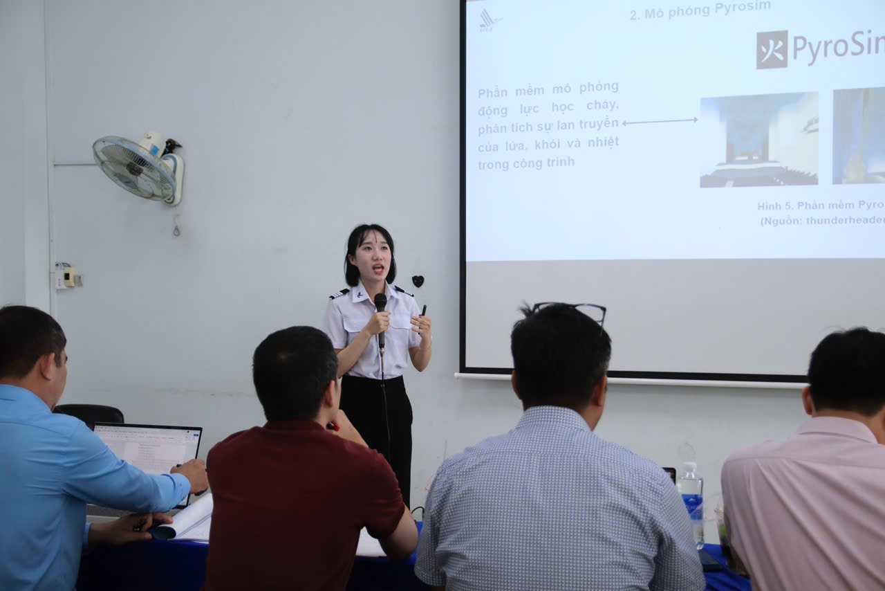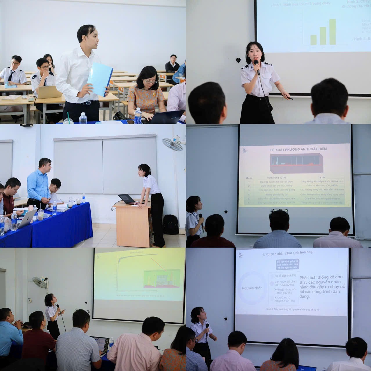 – Đề tài “Nghiên cứu tác động hỏa hoạn đối với các công trình dân dụng tại Việt Nam trong khoảng 2000 – 2024” – Chủ nhiệm đề tài sinh viên Nguyễn Trúc Lin Na cùng với các thành viên trong nhóm Nghiên cứu do TS. Nguyễn Phi Long hướng dẫn đã tiên phong trong việc ứng dụng công nghệ mô phỏng. Điểm sáng của nghiên cứu là việc sử dụng thành công phần mềm chuyên dụng Pyrosim để xây dựng các mô hình 3D, trực quan hóa quá trình lan truyền của đám cháy, sự phát tán khói và khí độc trong kịch bản hỏa hoạn. Kết quả này cung cấp dữ liệu khoa học tin cậy để đánh giá mức độ an toàn cháy, từ đó đề xuất các giải pháp PCCC tối ưu cho công trình.