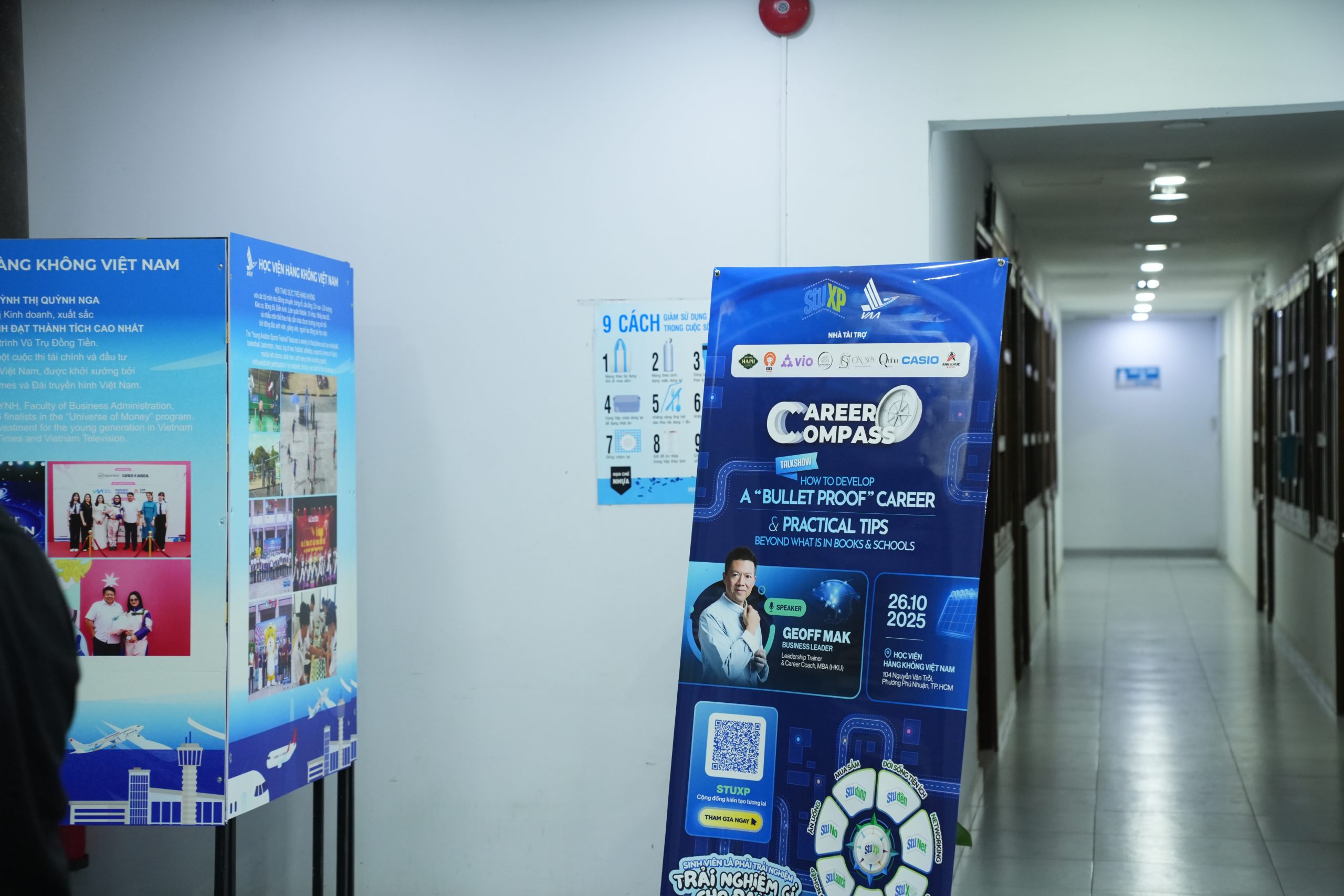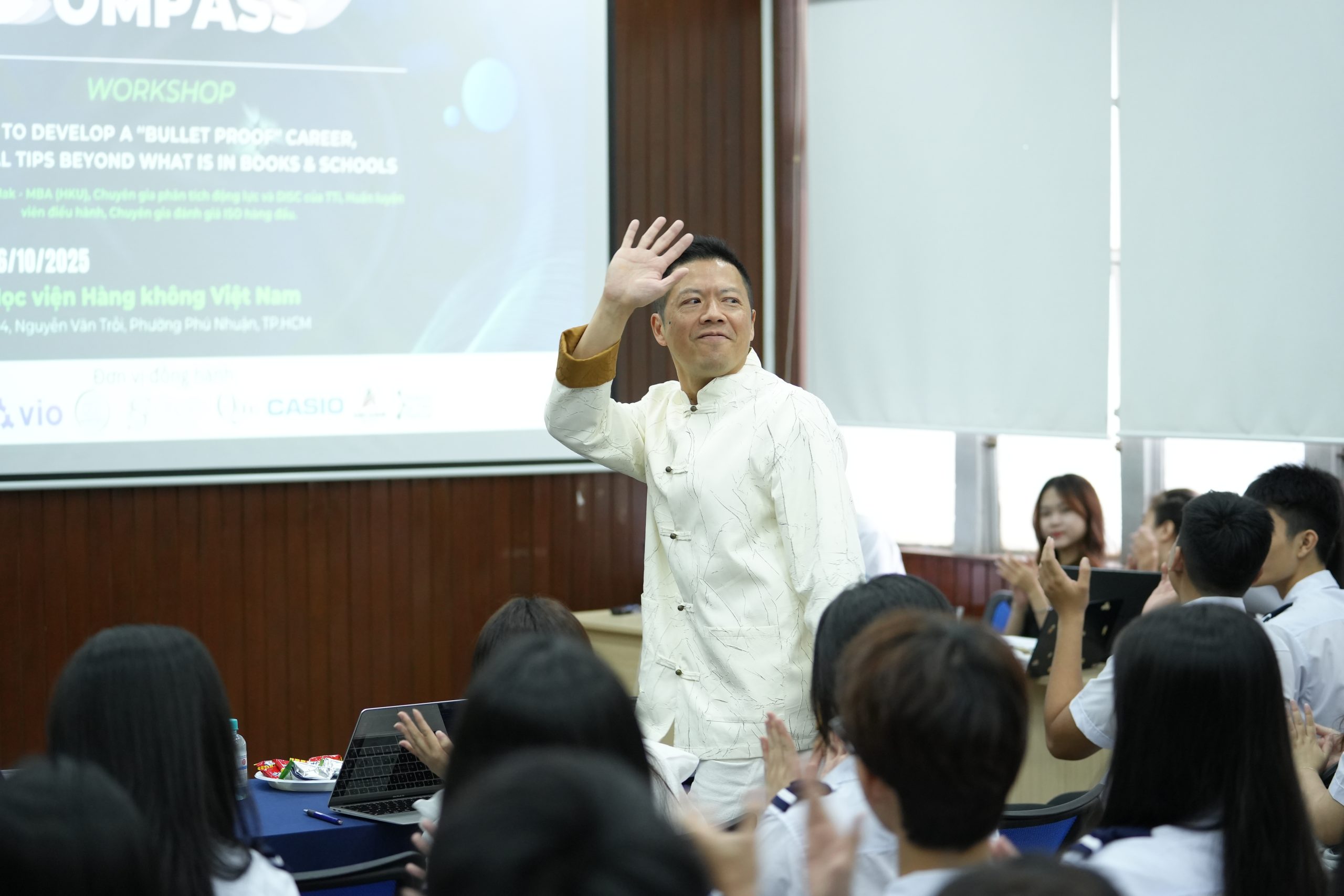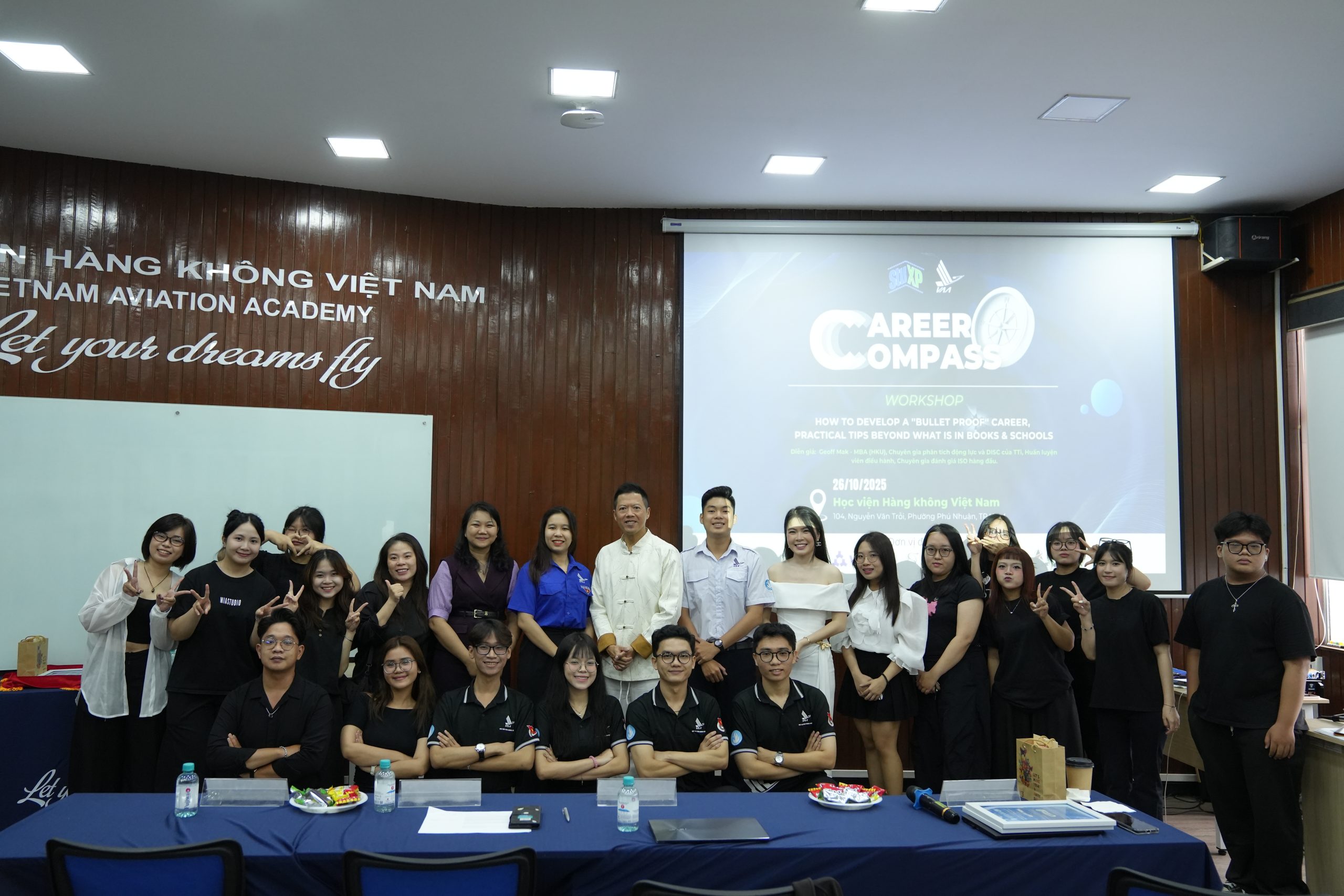 Sáng ngày 26/10/2025, tại phòng A101 – Học viện Hàng không Việt Nam, chương trình Talkshow “La Bàn Sự Nghiệp – How to Develop a Bullet-Proof Career” đã diễn ra thành công tốt đẹp với sự tham dự của Đồng chí Nguyễn Thanh Hảo – Bí thư Đoàn Thanh niên Học viện Hàng không Việt Nam, cùng hơn 120 sinh viên đến từ các khoa, bộ môn trong toàn Học viện.