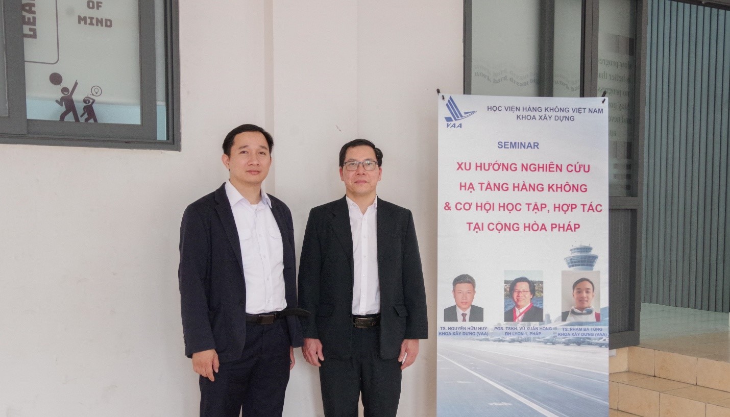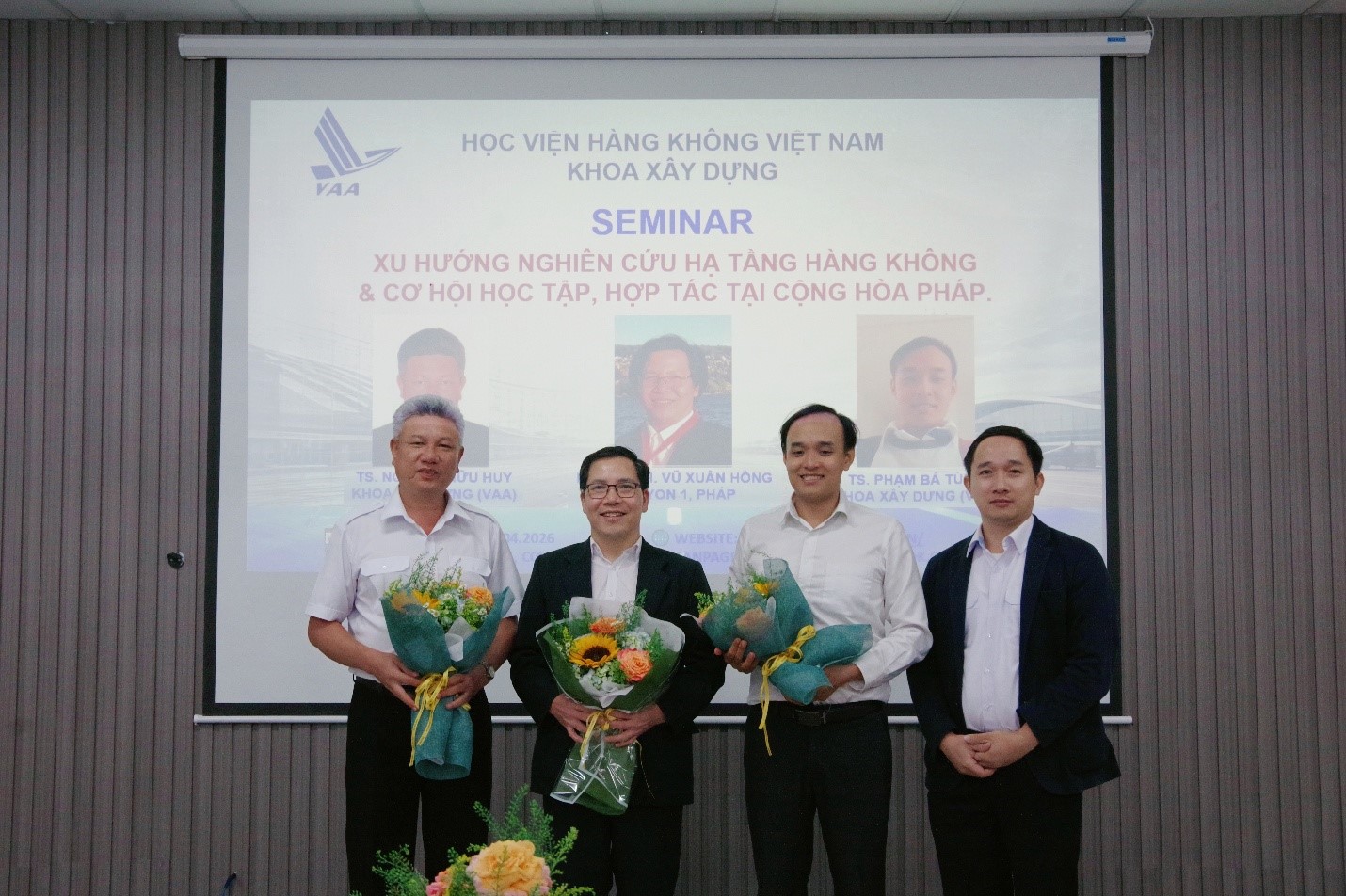 Chiều ngày 15/04/2026, tại Cơ sở 2 – Học viện Hàng không Việt Nam, Khoa Xây dựng đã tổ chức thành công rực rỡ buổi Seminar khoa học quốc tế với chủ đề: “Xu hướng nghiên cứu hạ tầng hàng không và cơ hội hợp tác, học tập tại Cộng hòa Pháp”.