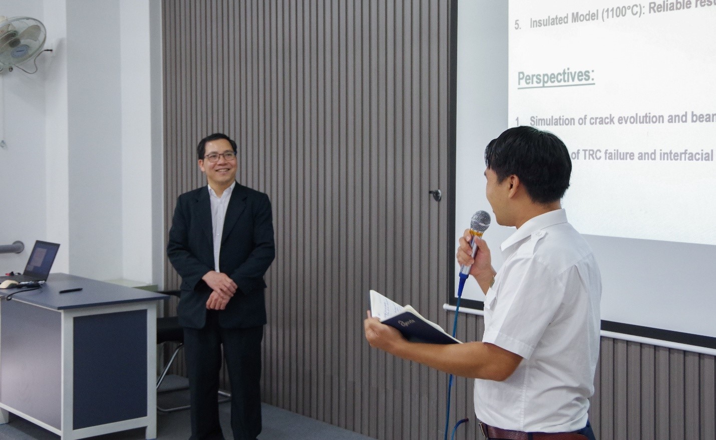 Đặc biệt, buổi Seminar không chỉ là diễn đàn của các Thầy Cô, mà còn là sân chơi học thuật của tuổi trẻ VAA. Báo cáo của bạn Nguyễn Trúc Lina – Sinh viên năm cuối Khoa Xây dựng về đề tài “Phân tích mô phỏng đám cháy tại nhà ga Tân Sơn Nhất” đã nhận được cơn mưa lời khen từ Hội đồng. Bằng việc ứng dụng phần mềm mô phỏng hiện đại, Lina đã minh chứng cho chất lượng đào tạo thực chiến và năng lực nghiên cứu xuất sắc của sinh viên Khoa Xây dựng.