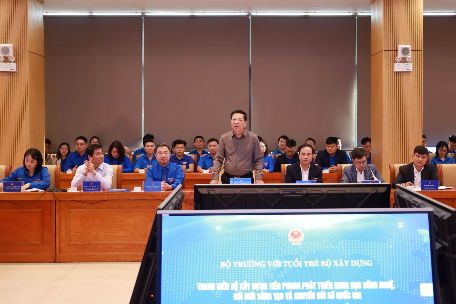 Chiều ngày 13/3 tham dự buổi đối thoại có đồng chí Bộ Trưởng Trần Hồng Minh, Thứ trưởng Nguyễn Tường Văn, Thứ trưởng Lê Anh Tuấn, Thứ trưởng Nguyễn Văn Sinh; Phó Bí thư chuyên trách Đảng ủy Bộ Xây dựng Đào Văn Tiến, đại diện Trung ương Đoàn TNCS Hồ Chí Minh; đại diện Đoàn Thanh niên Chính phủ; lãnh đạo Công đoàn Xây dựng Việt Nam.