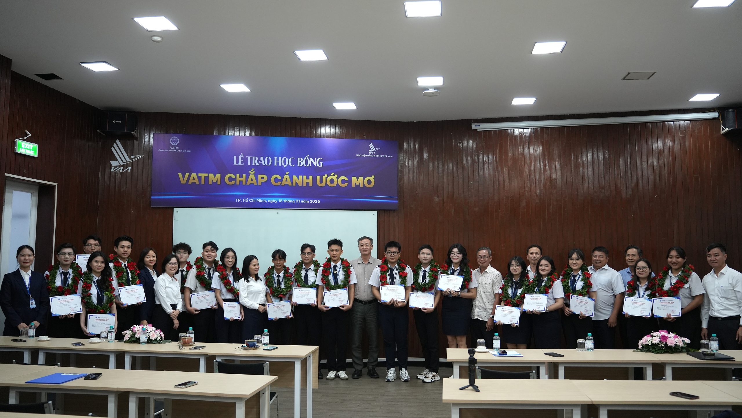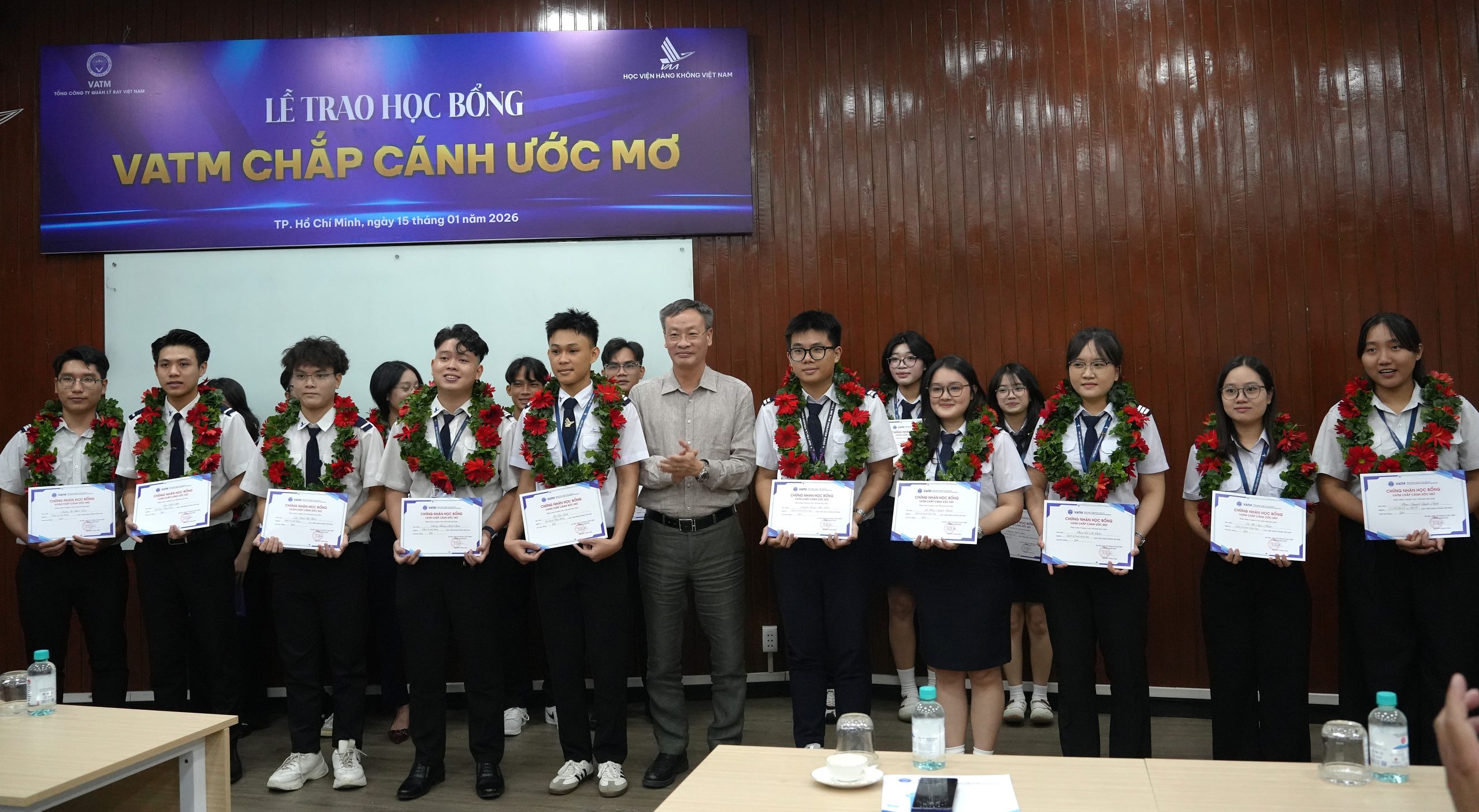 Ngày 15-1-2026, tại Học viện Hàng không Việt Nam (VAA), Tổng công ty Quản lý bay Việt Nam (VATM) phối hợp với Học viện tổ chức Lễ trao học bổng “VATM – Chắp cánh ước mơ” năm 2025 dành cho sinh viên.